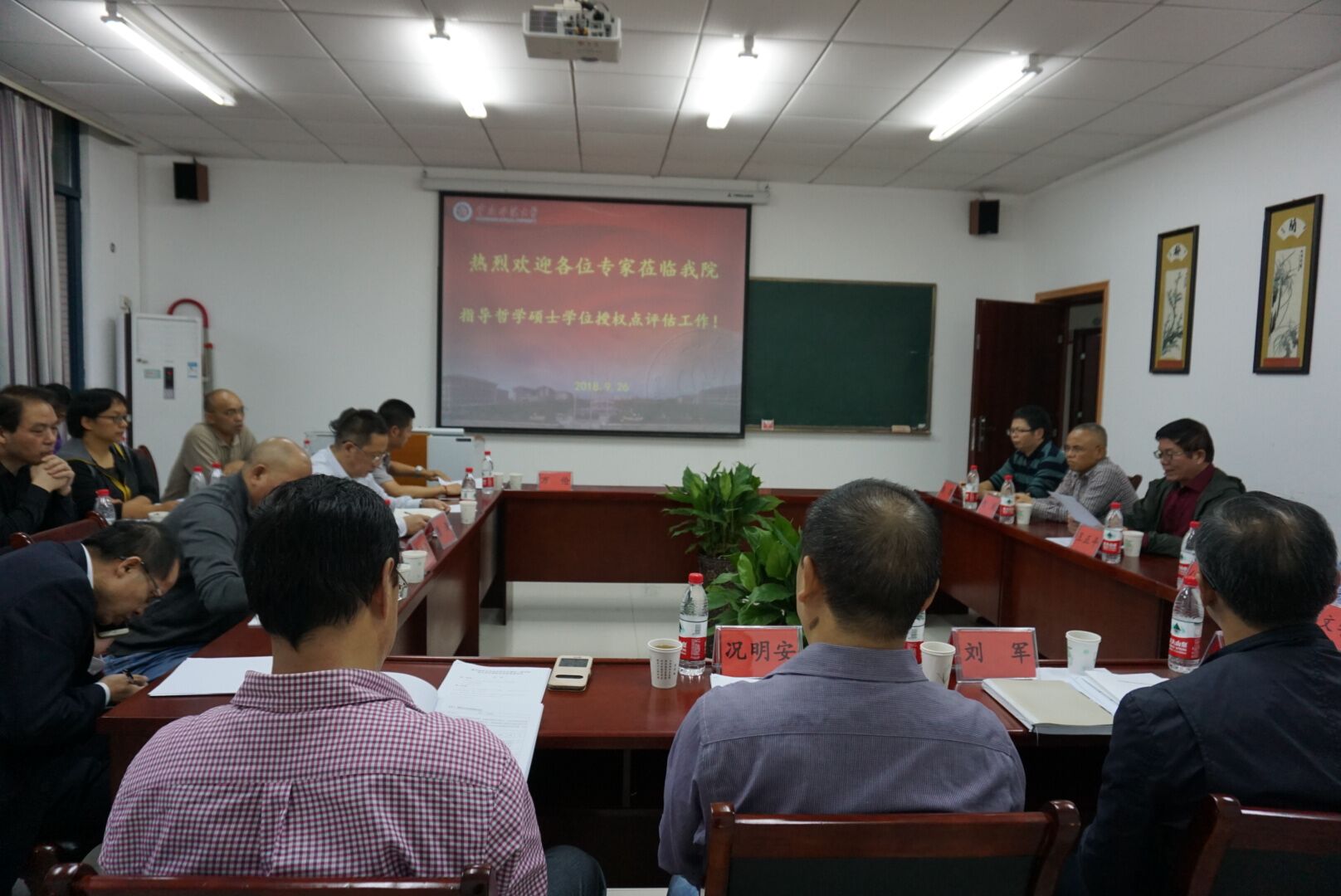 2018年9月26日下午,马克思主义学院哲学一级学科硕士学位授权点合格性评估工作在汇贤楼309会议室进行。评估专家组组长、上海师范大学博导王正平教授,以及重庆大学博导何跃教授、西南大学博导任丑教授、西南政法大学博导文学平教授、中共重庆市委党校陈剑教授作为现场评估专家进行了现场评估。学院哲学硕士学位授权点合格性评估工作组组长、马克思主义学院院长陈洪教授,哲学一级学科带头人李文华教授、学位点负责人李长泰教授以及哲学学位授权点全体骨干教师、学院班子成员、管理人员参与了本次评估活动。