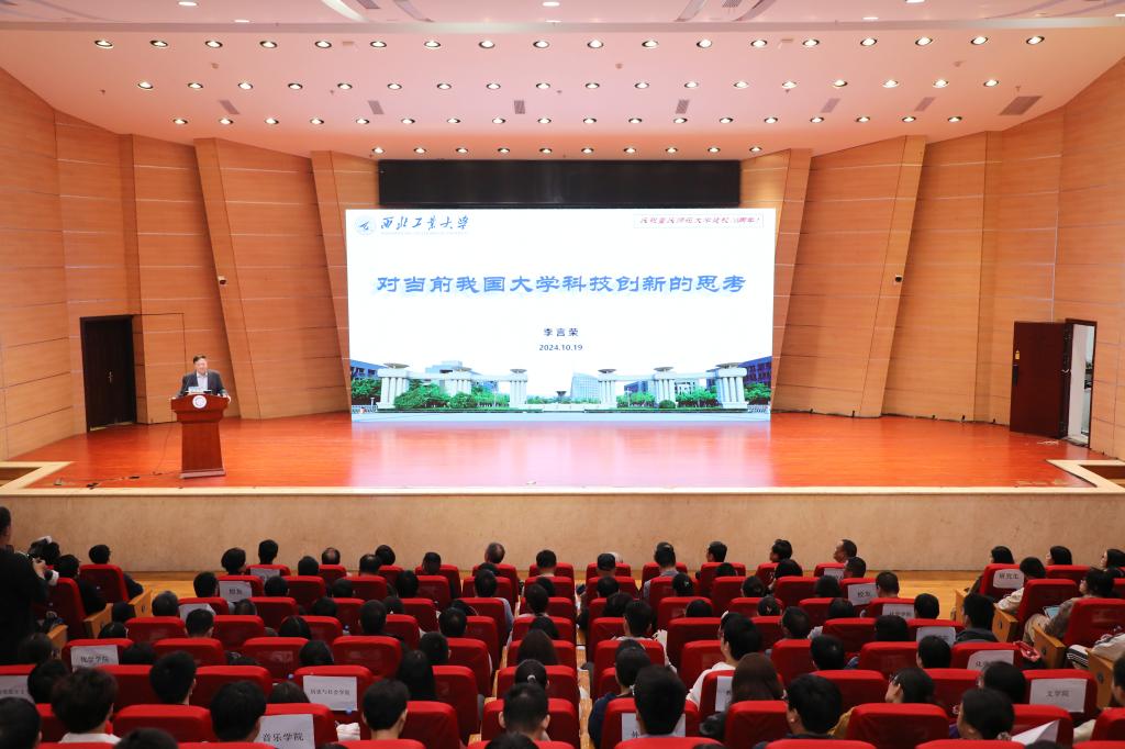 10月19日下午,学校校友、中国工程院院士、西北工业大学党委书记李言荣教授应邀在学校校友会堂音乐厅为师生作题为《对当前我国大学科技创新的思考》的专题讲座。学校党委书记张艳主持讲座。