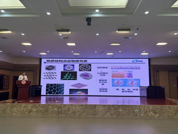 王芳卫研究员深入细致地介绍了我国首台脉冲型散裂中子源—中国散裂中子源(CSNS),重点讲解了中子散射技术及其在凝聚态物质研究中的应用,特别是在量子和无序材料、有机材料、原子动力学研究,以及无序、掺杂、相变、热动力学、化学和生物性质等领域的应用前景。他和与会师生探讨了中子散射技术在新型清洁能源材料(例如锂离子电池材料、热电材料等)方面的应用潜力。