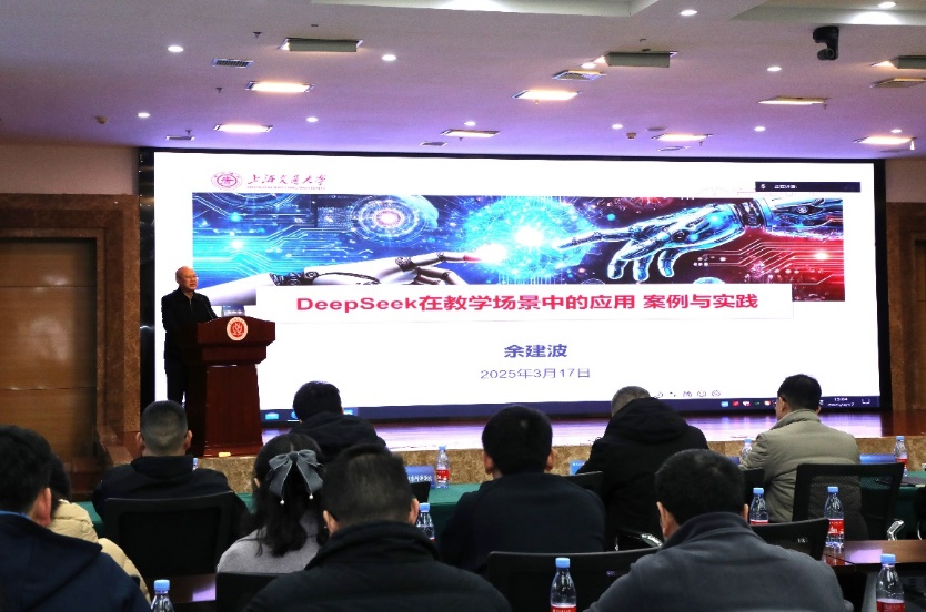 上海交通大学余建波研究员作专题报告,系统介绍该校“AI(人工智能)+HI(人类智能)”教育理念及《AI+教育教学行动方案》。通过多个教学应用案例,展示DeepSeek等AI技术在教学改革中的实践成果,并指出:“到2025年,智能教学系统将全面支持高校数字化教学改革。”