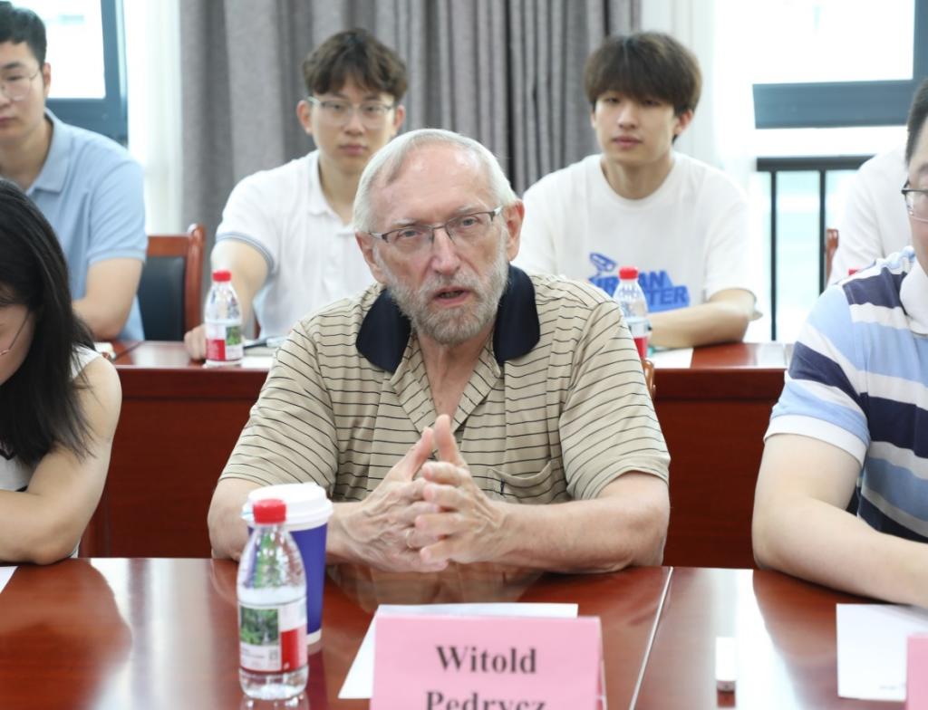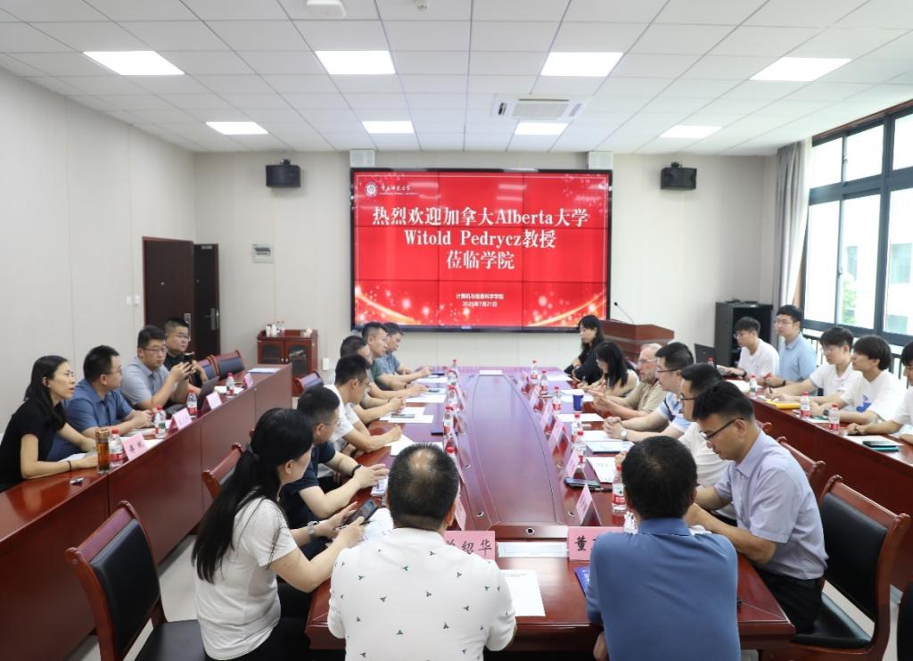 贾韬代表学校对Witold Pedrycz教授表示热烈欢迎,并介绍了学校专业建设、师资队伍、人才培养和科研工作等情况。他指出,期待未来能与Witold Pedrycz教授和Alberta大学在学术研究、学科建设、人才培养等方面开展国际化合作,实现双方协同发展,为相关领域的研究实践贡献力量。