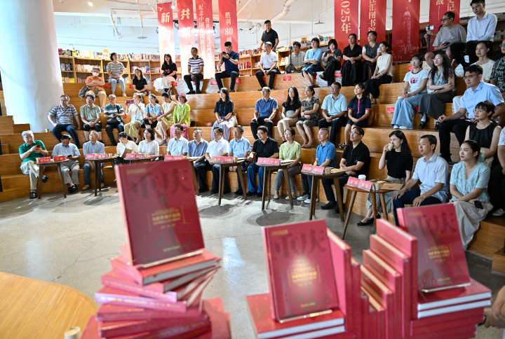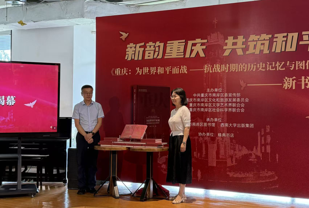 新书发布会上,重庆市委宣传部出版处处长蒲洋、南岸区文旅委党委书记庄宁豫共同为新书揭幕。西南大学出版集团总经理靳玉军在致辞中谈道,2025年是中国人民抗日战争暨世界反法西斯战争胜利80周年,在这个镌刻着中华民族不屈意志与世界人民正义荣光的特殊一年,该书的出版具有特殊而深远的意义,既是对历史的回望,更是对和平的展望。