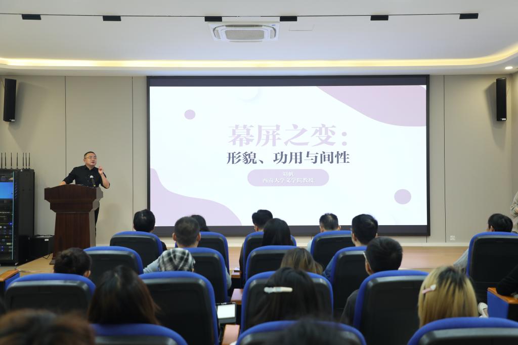 10月17日下午,bw必威新闻与传媒学院特邀西南大学文学院教授、博士生导师刘帆作题为“幕屏之变:形貌、功用与间性”的学术讲座。校党委常委、副校长、重庆新闻学院执行院长黄永宜,新闻与传媒学院领导班子及师生代表参加讲座。