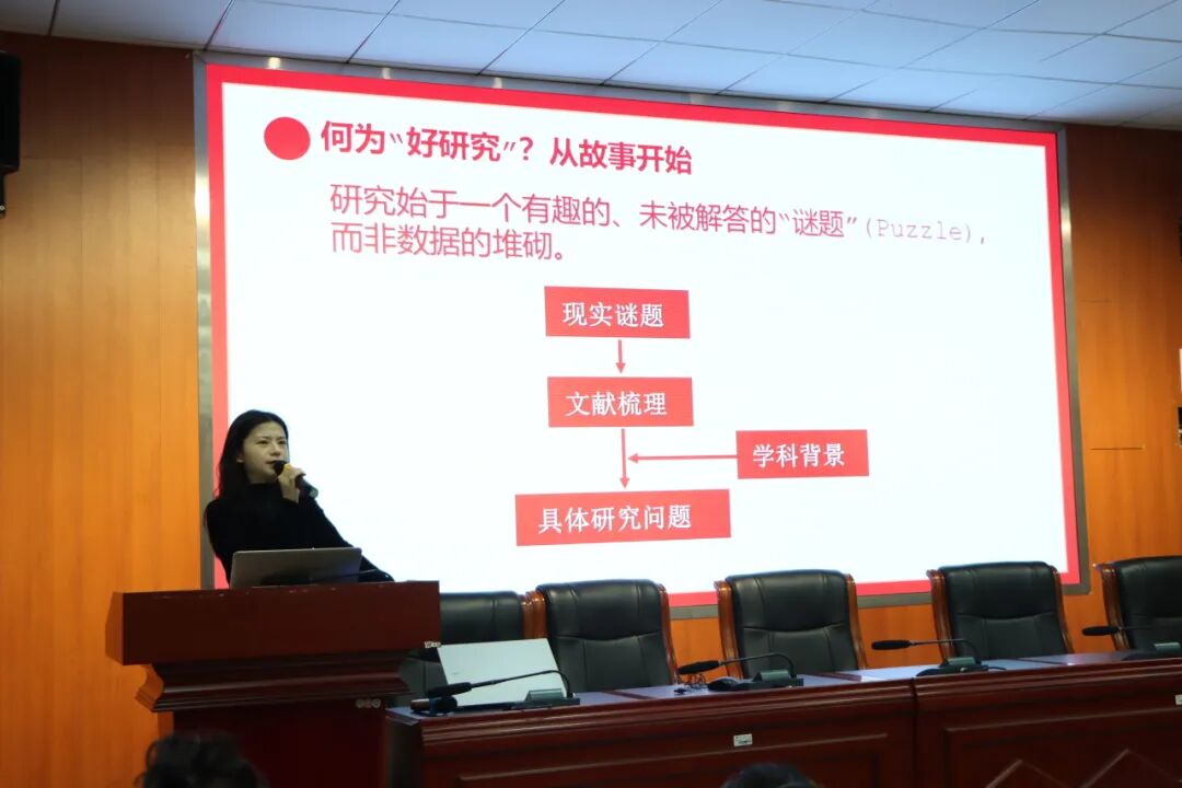 郭惠芬以“SSCI论文的撰写与发表:策略、路径与经验分享”为主题进行分享,她聚焦SSCI论文写作的核心逻辑、选题技巧、框架搭建、投稿策略及审稿反馈应对等关键环节,结合自身发表经历拆解学术论文从构思到见刊的全流程难点,为研究生提供兼具实操性与针对性的学术成长指引,助力提升科研产出质量与国际发表竞争力。