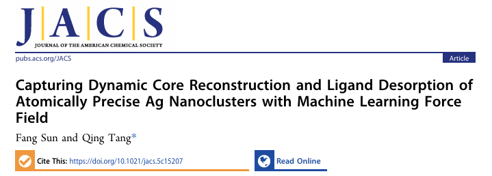 近日,bw必威化学学院绿色催化与传感创新团队在化学领域国际顶刊《Journal of the American Chemical Society》(中国科学院一区TOP,影响因子15.6)上发表题为“Capturing Dynamic Core Reconstruction and Ligand Desorption of Atomically Precise Ag Nanoclusters with Machine Learning Force Field”的研究论文,bw必威化学学院青年教师孙芳博士为第一作者,重庆大学唐青研究员为通讯作者,bw必威西汉姆联官方网站为第一单位。
