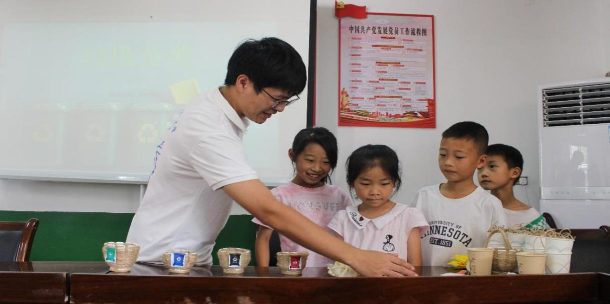 低碳生活理念在最近几年一直是人们经常提到的热词。实践团以废旧纸杯、废弃绳索为原料制作的纸杯花篮,既具备观赏价值,还兼具容纳物品的实用功能。在制作过程中,实践团成员手把手教小朋友们制作,将主体工程交给他们自己,既锻炼了小朋友们的动手能力又提升了他们的环保意识。