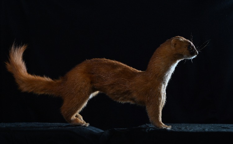 ▲动物标本——黄鼠狼。首席记者 龙帆 摄