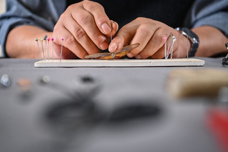 ▲4月10日,唐安科正在制作蝴蝶标本。首席记者 龙帆 摄