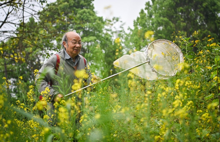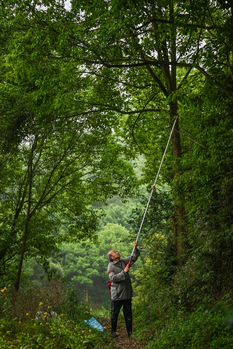 ▲4月10日,重庆高新区虎溪街道,唐安科正在野外收集标本。首席记者 龙帆 摄
