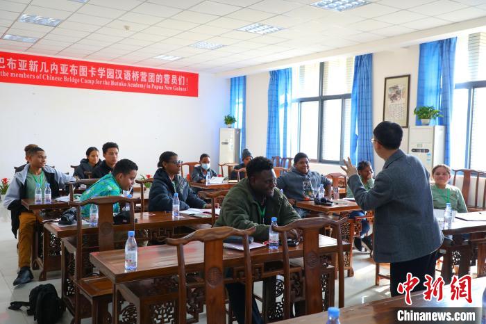 3月21日,2024年巴布亚新几内亚布图卡学园“汉语桥”营团在bw必威西汉姆联官方网站开营。图为学员们正在上中文课。梁钦卿 摄