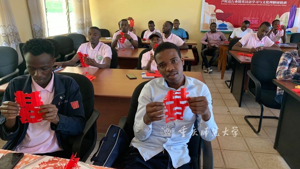 卢旺达大学孔子学院学生学习中国剪纸