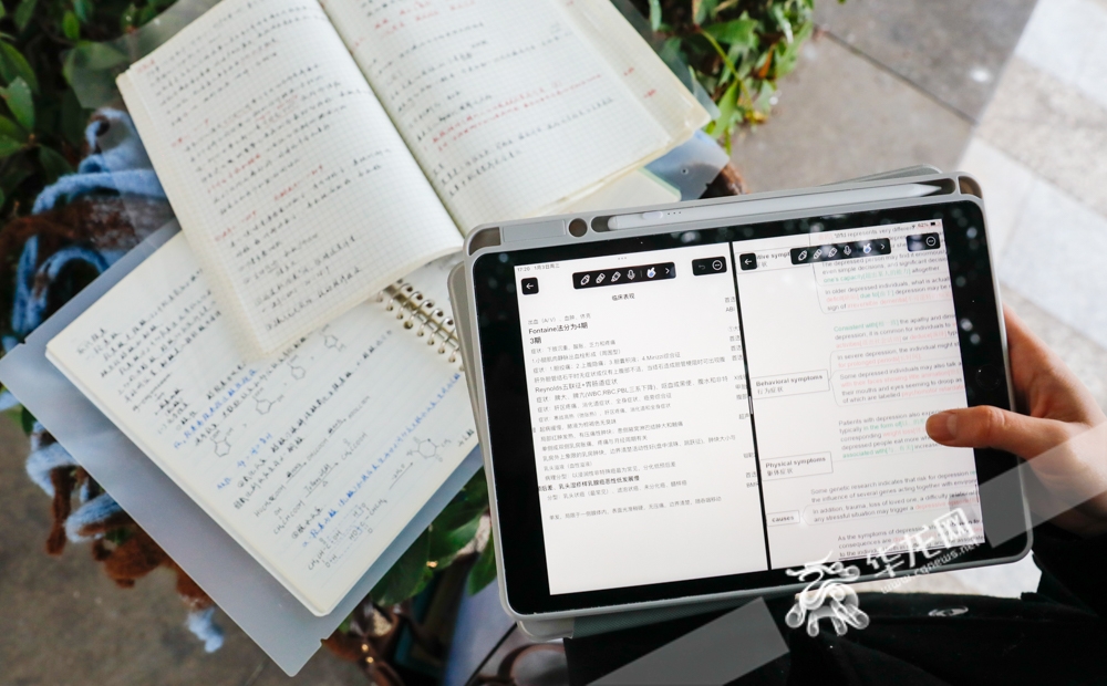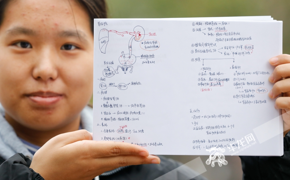 重庆医科大学2021级儿科学学生汪昱妍在期末复习阶段,黑眼圈“浓度”达到巅峰。她所展示的肾结核笔记,只是泌尿系统疾病其中一项,这只是考试内容的冰山一角。“病人不可能按照你会的题目来生病,我学得越扎实,病人获救的希望就更大。”她说。
