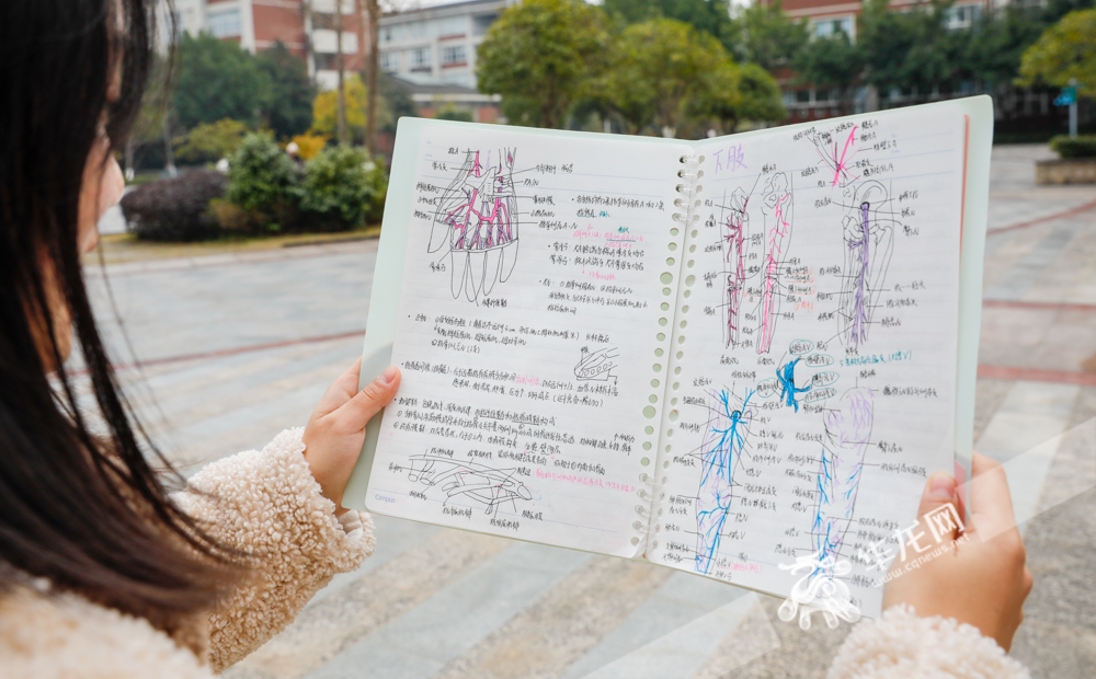 画图是美术生的专长?不一定,某些医学生可能比美术生还要爱画。重庆医科大学2022眼视光医学学生刘兰亭为了能更好理解解剖学,笔记本上画满人体肌肉、经络。一本书四五百页,她要消化完所有重难点,图图成为辅助她复习的关键。她还将笔记“电子化”“图像化”,随时随地整理查阅。