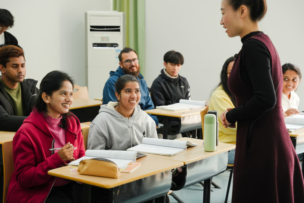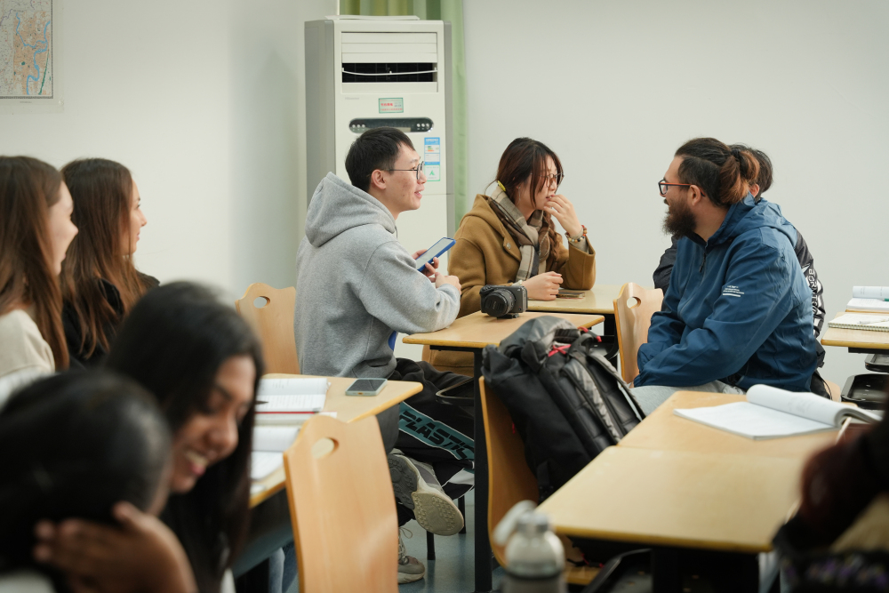 ▲国际汉语文化学院穆亚伟老师正在给汉语国际教育的同学上课。