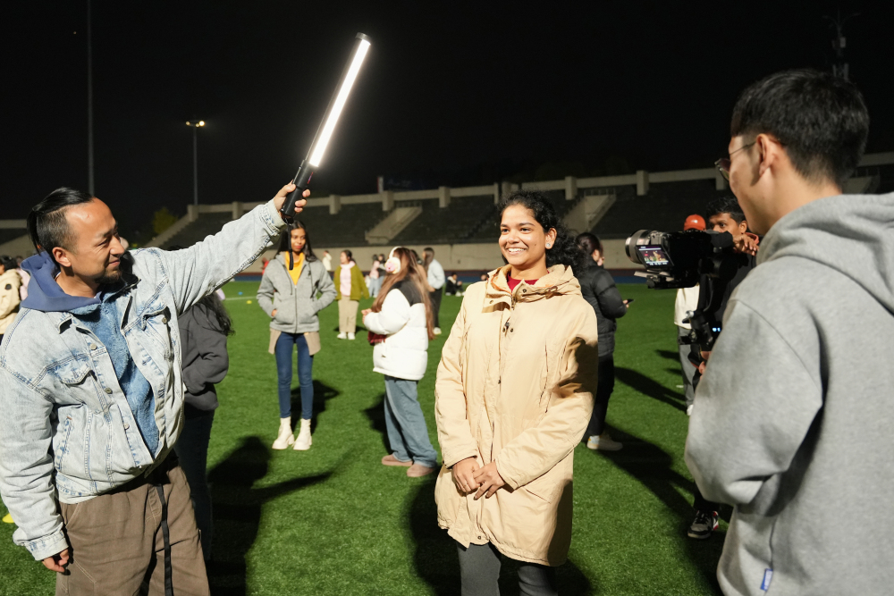 ▲纪录片创作团队拍摄留学生课外活动。
