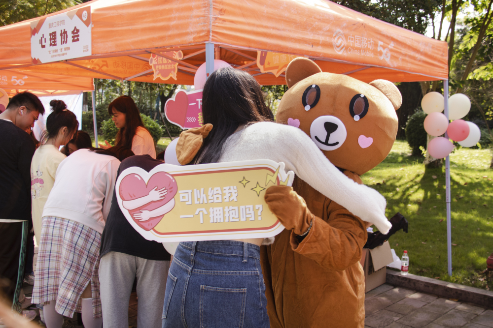 ▲重庆工程学院心理协会展区开展的互动活动。记者 齐岚森 实习生 辛飞 摄
