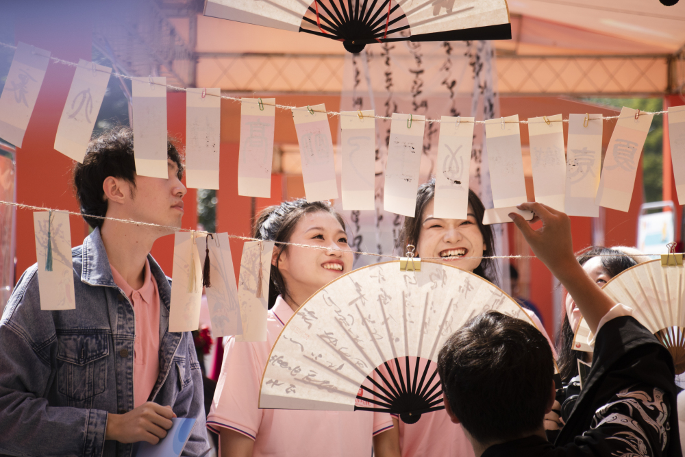 ▲同学们在四川农业大学学生书画协会区前参与活动。记者 齐岚森 实习生 辛飞 摄