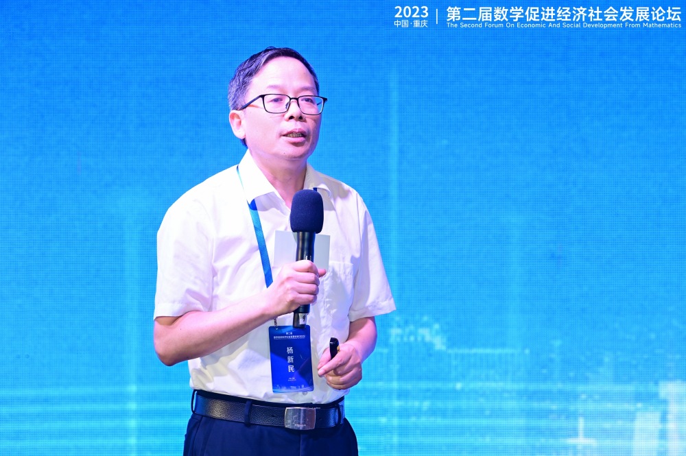 ▲重庆国家应用数学中心主任杨新民作报告。受访单位供图
