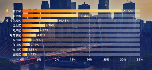 重庆旅游目的地(区县)榜单 TOP10。报告截图