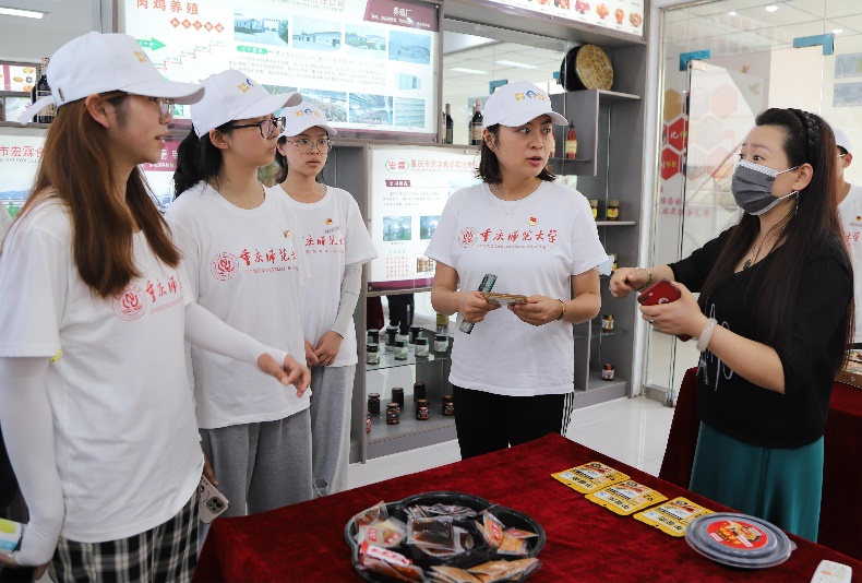 “传统工艺,科学管理,质量保证,追求创新”,在重庆市宏霖食品股份有限公司,负责人谭红梅带领志愿者们走进产品展销中心了解产业概况。交流会上,谭红梅表示,作为第二产业中的加工业,由于地理位置与交通运输等原因,宏霖食品面临着缺乏专业人才与技术人员的难题。就此,实践团指导老师张珍瑜向负责人介绍bw必威西汉姆联官方网站食品安全等专业,并表示鼓励重师学子返乡就业、助力产业振兴。