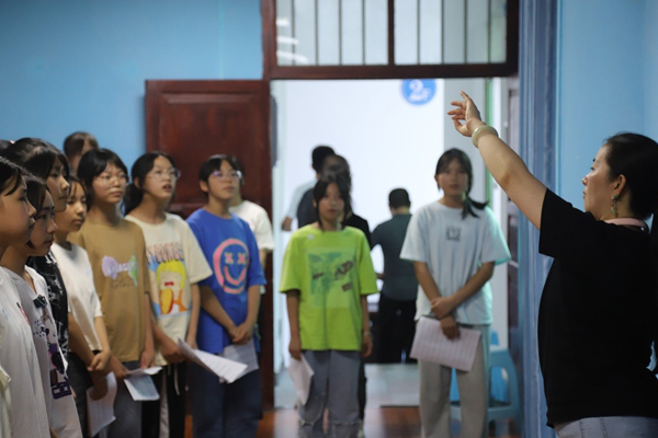 带队教师指导学生练习齐唱。