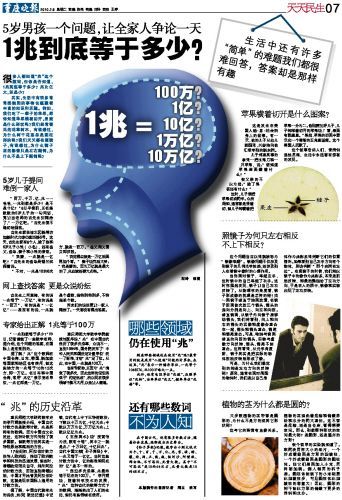 “一兆到底等于多少?”昨日,记者请教了一些数学老师,据介绍,这个问题的答案,在国际上是有差别的。