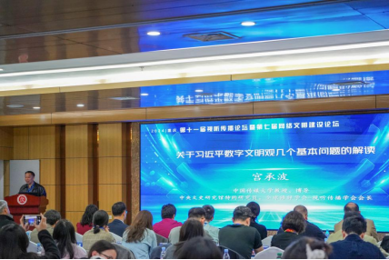 中国传媒大学教授、博导,中央文史研究馆特约研究员、全球修辞学会-视听传播学会会长宫承波作主题报告。杨怡睿摄