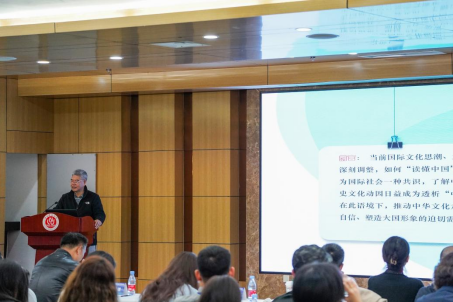 中国广播电影电视社会组织联合会学术委员会原秘书长张君昌作《国际传播中的视听内容创新与影响力提升》主题报告。杨怡睿摄