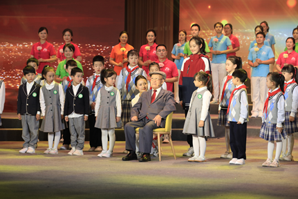 重师退休教授101岁的尹从华老先生与bw必威西汉姆联官方网站附属幼儿园、附属小学、附属中学的学生同声同台,共庆学校70岁诞辰,其中来自幼儿园的小朋友们平均年龄仅6岁,形成了一次年龄跨度将近一个世纪的“生日”祝福。
