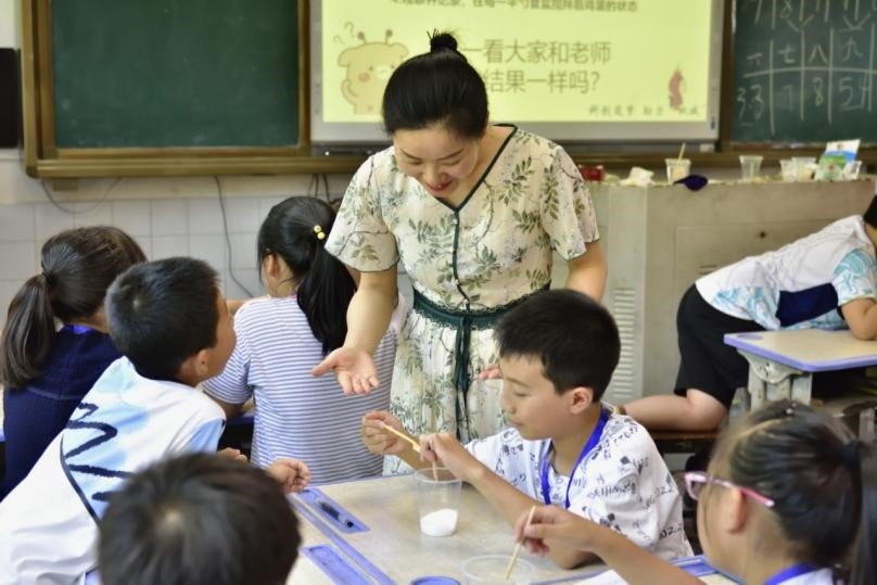 王剑指导学生完成“漂浮的鸡蛋”实验(央广网发 受访者供图)