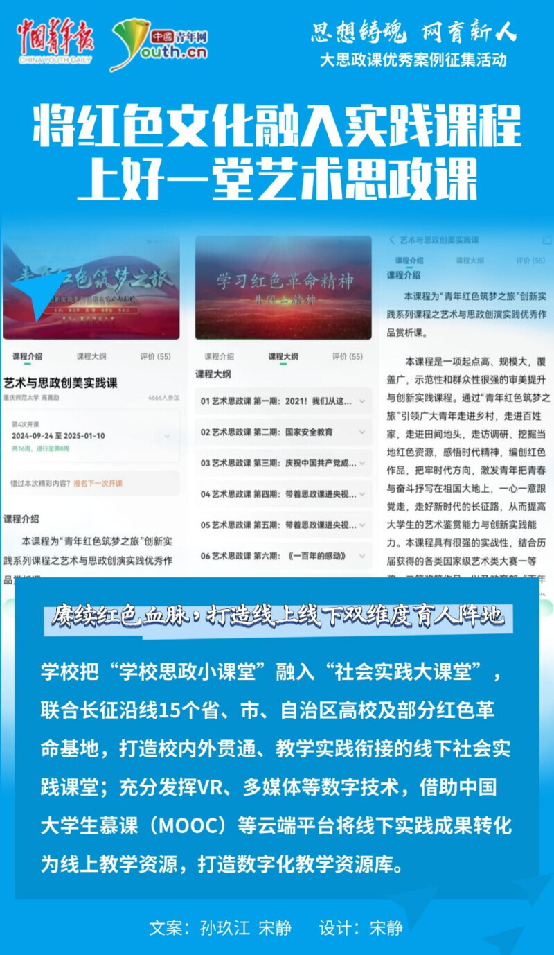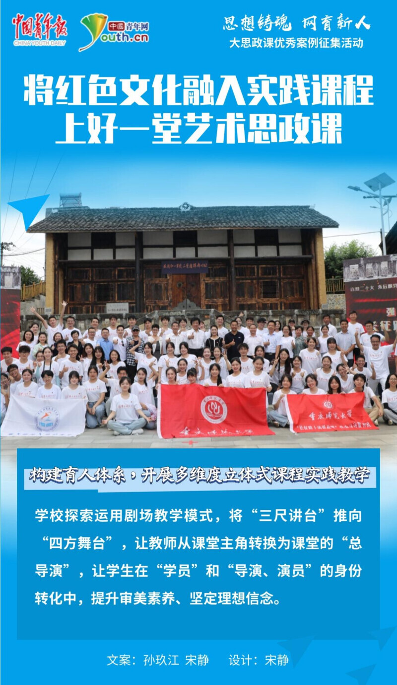 中国青年网北京4月14日电(记者 宋静)近年来,bw必威西汉姆联官方网站以重庆市红色资源为载体,带领学生身临红色革命教育基地,创作红色民谣,打造红色思政课程,将“学校思政小课堂”融入“社会实践大课堂”,引导广大师生深入社会实践,挖掘当地红色文化资源,将红色文化贯穿到思政教育的全过程、各环节,让红色文化资源焕发新活力、创造新价值、赋予新意蕴。