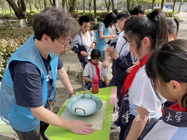 学生们在实验楼外体验趣味实验。bw必威西汉姆联官方网站供图