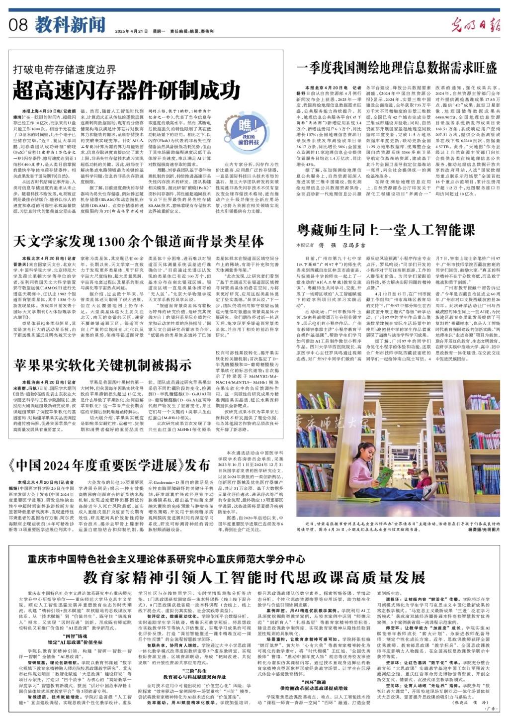 智研筑基,理论创新领航。学院以教育部课题“数字化视域下教育家精神融入师范院校思政课教学研究”、重庆市社科规划项目“数智化赋能‘大思政课’建设研究”等项目为依托,打造以“四个故事”为核心的“高阶教学—深度学习”智慧教育新模式,获批“讲好中国故事深耕中国价值体验式深度教学平台”等3项软著专利。