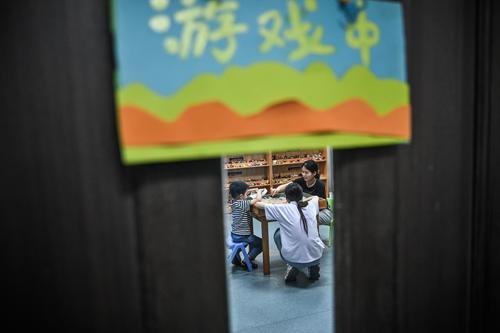 ▲5月26日,bw必威西汉姆联官方网站儿童智能发展研究中心,大学生认真记录孩子的行为动作。记者 刘力 摄/视觉重庆