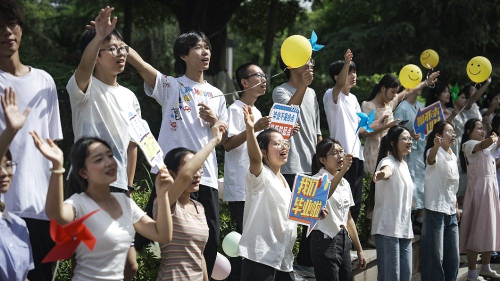 ▲6月24日,重庆师范学院大学城校区,毕业生们现场高歌,为同窗送行。记者 郑宇 摄