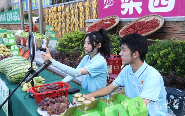 云上“村干部”开展电商直播。校方供图
