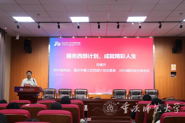 西部计划校友田镇齐开讲“微光讲台”。校方供图