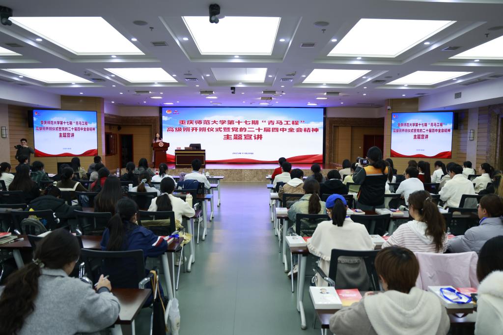 11月20日下午,学校第十七期“青马工程”高级班开班仪式暨党的二十届四中全会精神宣讲会在博雅楼举行。市委宣讲团成员、学校党委书记张艳出席并宣讲党的二十届四中全会精神,党委常委、副校长黄永宜主持宣讲会。
